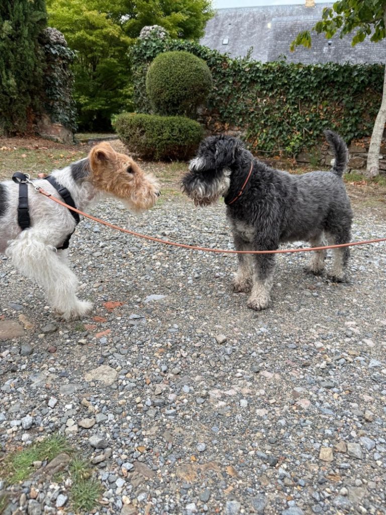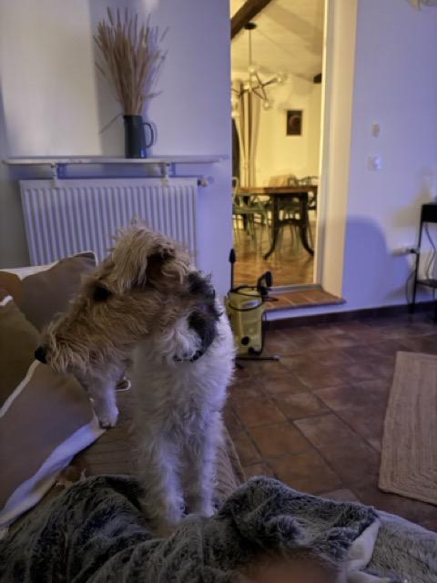 Ich hab grad seeehr viel Fell und hoffe, nicht demnächst schon wieder getrimmt zu werden,Frauchen sagt, ich sehe aus wie ein Schaf, aber schließlich ists ja auch sehr kalt draußen! Ich möchte Euch noch ein Foto vom Sommer zeigen, da waren wir in Frankreich und ich hatte einen riesengroßen Pool, in den ich aber gar nicht rein wollte 😂,Ich hab dafür das riesige Anwesen genossen und mich gefreut, wenn der Nachbarshund immer mal wieder vorbeischaute.