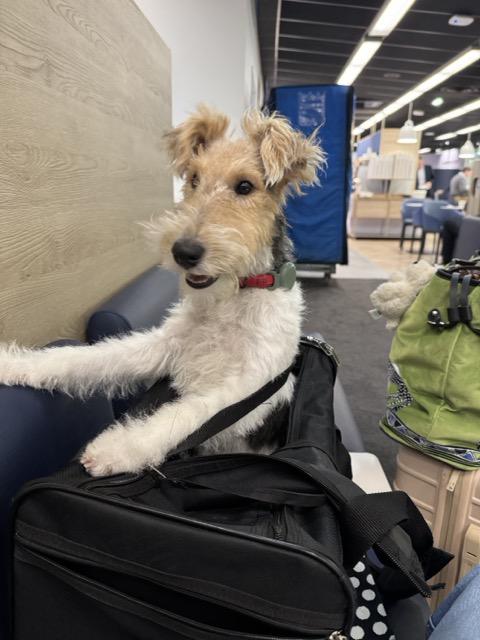 Unser Foxel ist immer für besondere Fahrten zu begeistern, so geniesst er auch die Fahrt mit dem Sessellift an der Seite seines Herrchens.