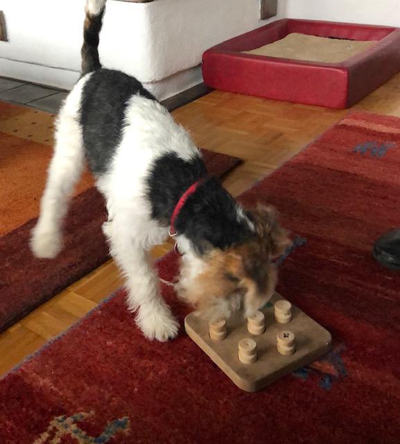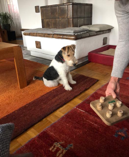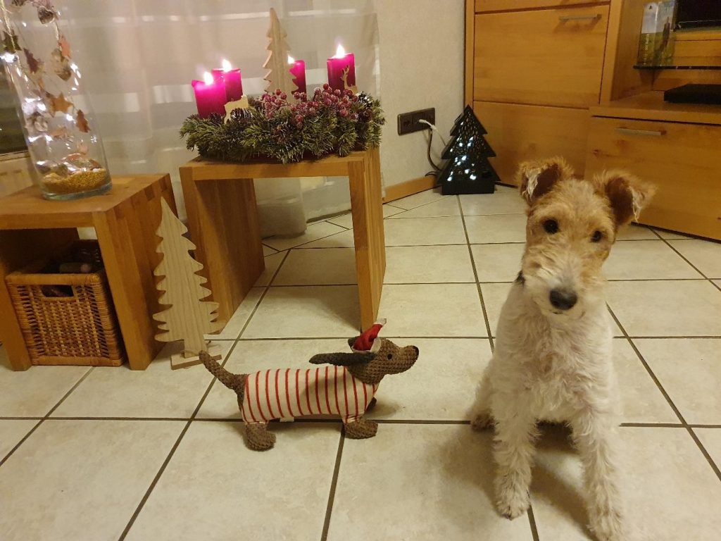 Trotzdem ist sie natürlich immer noch ein junger Hund. So findet sie zum Beispiel, und da sind wir geteilter Meinung, dass der Adventskranz mit einem Rentier ohne Kopf viel schöner ist. Bei Beschäftigung jeglicher Art ist sie mit Feuereifer dabei, egal ob apportieren, suchen oder Tricks. Nelli lernt gerne und schnell.