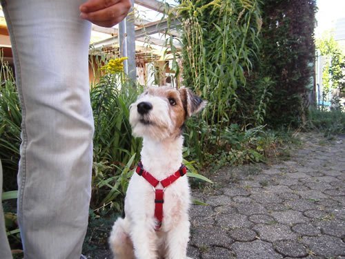 Bei Fuß sitzen(bleiben ) - ok, das mit dem bleiben müssen wir noch sehr üben ;),