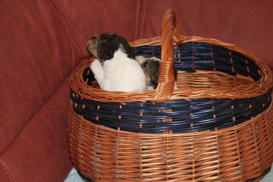Mit 6 Welpen wird es ganz schön eng im Korb.